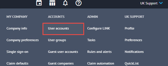 To do this, click on the drop-down next to your name in Claims Workspace followed by User Accounts.