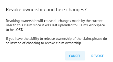 Please note that this is the final stage where you can click Cancel. Once you revoke ownership, any unsaved, unsynchronised changes will be lost.